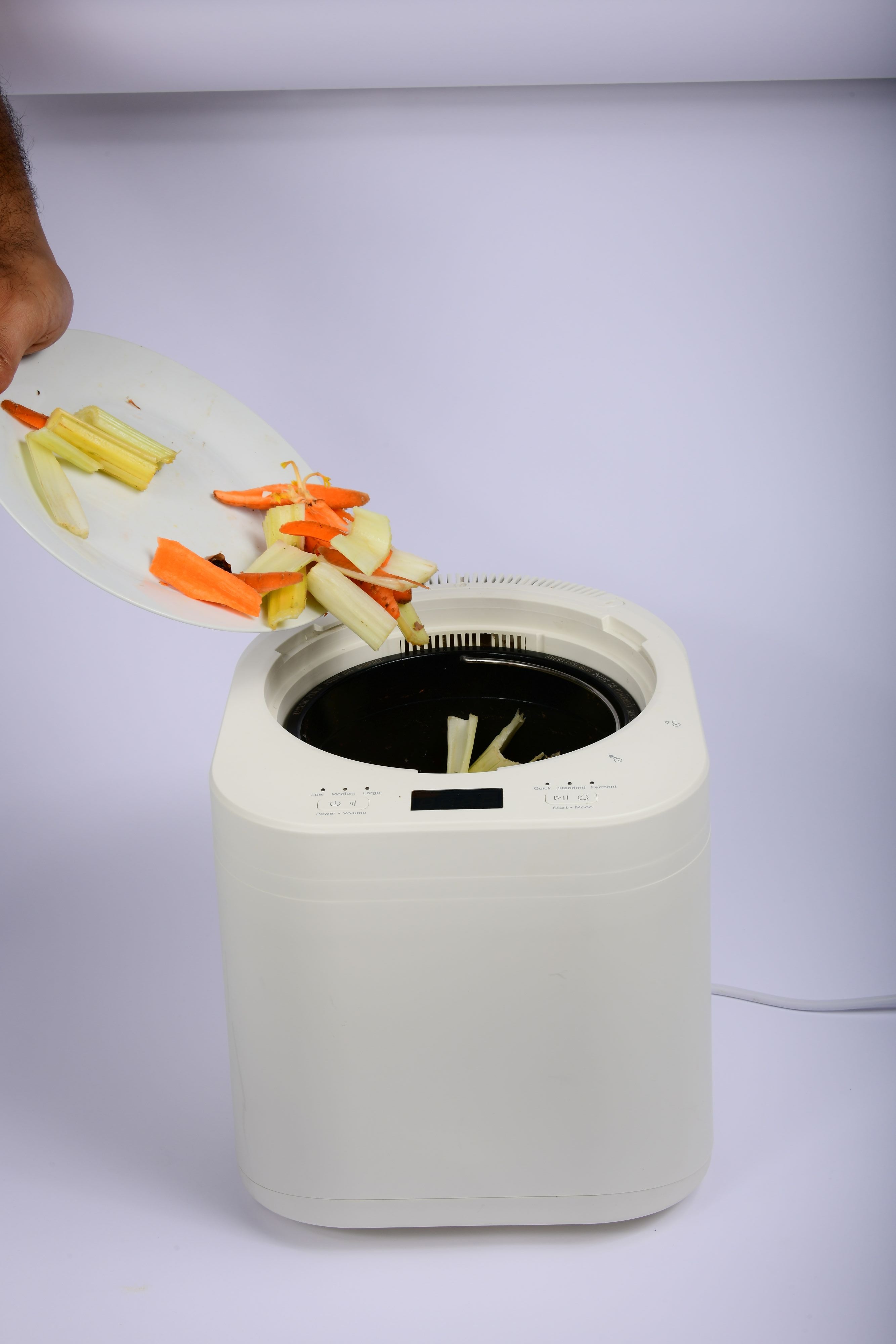 It breaks down food waste using grinding, gentle heat, and airflow to create dry compost in hours, not weeks.